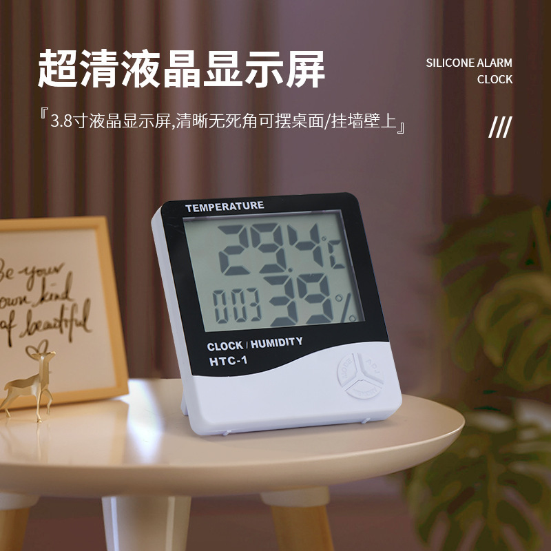 HTC-1 デジタル温度計家庭用および車用屋内電子温度と湿度計タイミング目覚まし時計天気時計卸売