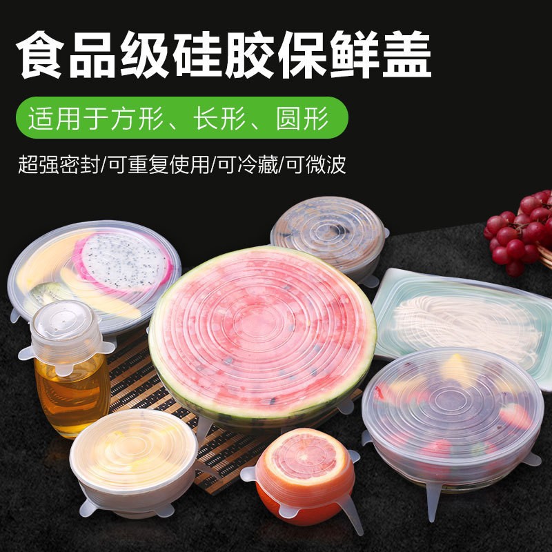 冷蔵庫鮮度保持蓋、ボウル蓋、加熱シール蓋、家庭用丸型シリコンラップ、多機能ユニバーサルの6点セット