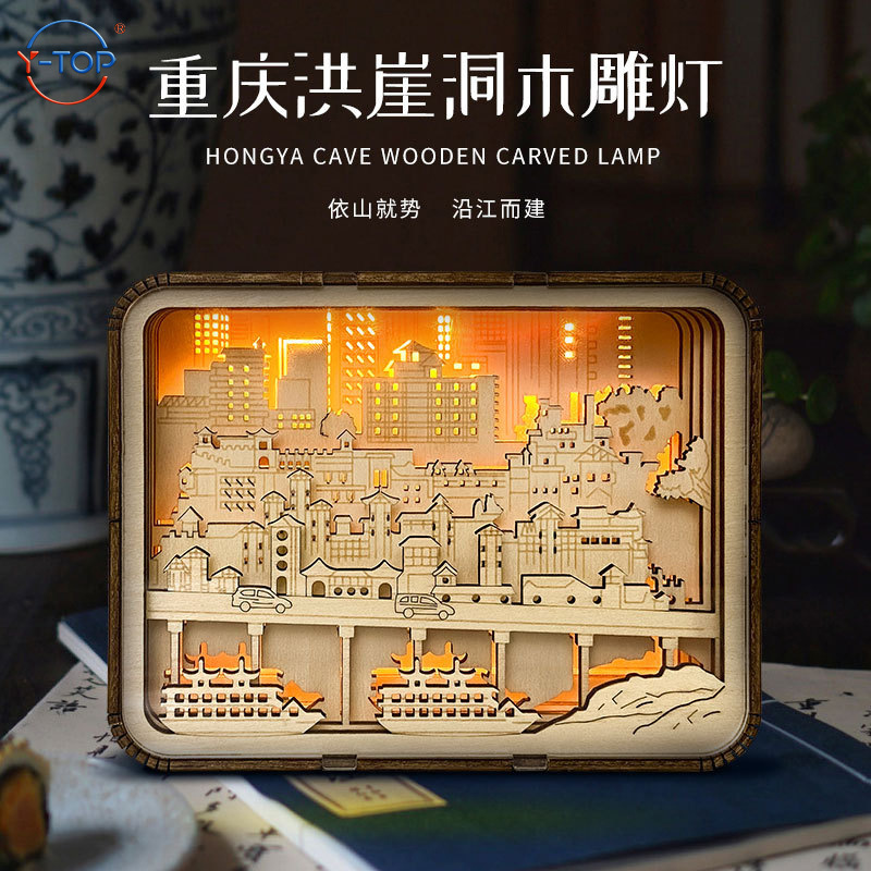 重慶洪崖洞木彫り灯都市イメージ記念品手作り3dモデル文創工芸品プレゼント