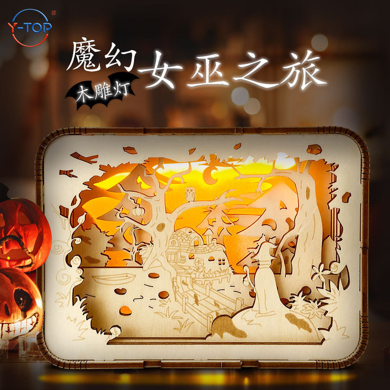 ハロウィーン装飾木彫り灯diy手作りの組み合わせ小夜灯創意立体工芸品木製祭りプレゼント