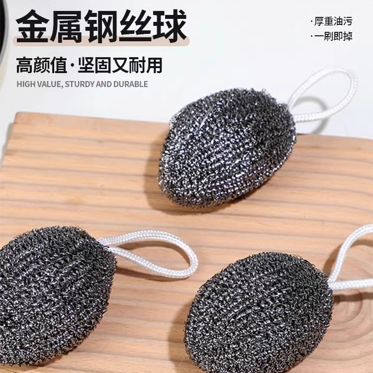 ストラップ付きスチールボールステンレス洗浄ボールキッチンブラシ鍋皿洗い神器鉄線ボール家庭用強力スチールボール