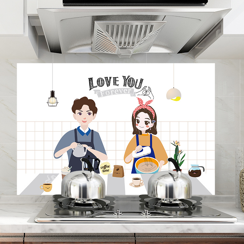 台所の防油シールは防水防火耐高温で、調理台の壁のタイルが醜いレンジフードの壁に貼ってある