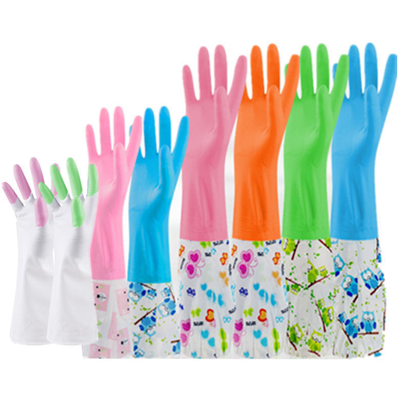 家事の皿洗い手袋の女性にベルベットをつけて保温防水耐久性のある台所の洗濯服の四季の清潔なゴム手袋を厚くする