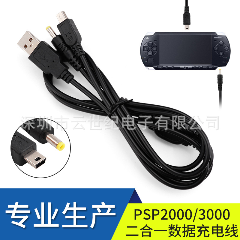 工場直販 高品質 PSP2000/3000 2in1 データ充電ケーブル ブラック 1.2m(CE認証)