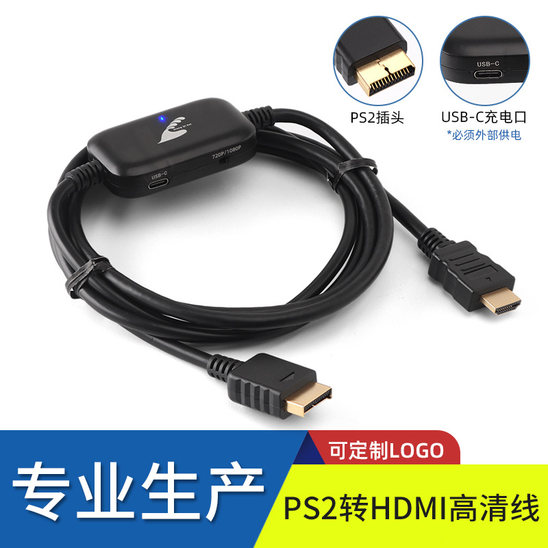 工場直販 高品質 PS2 to HDMI HD ケーブル ブラック 金メッキ 2m (1080P)