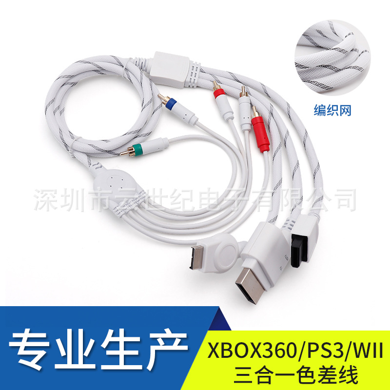工場直販 高品質 XBOX360/PS3/WII 三合一色差線 ホワイト ネット付き 1.8m