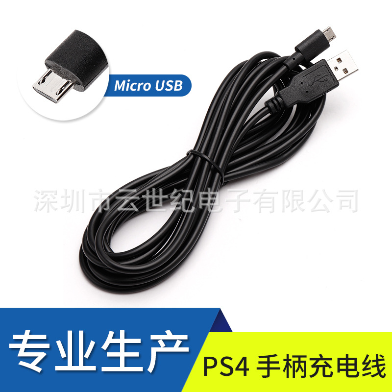 工場直販 高品質 PS4コントローラー充電ケーブル ブラック 3m(CE認証)
