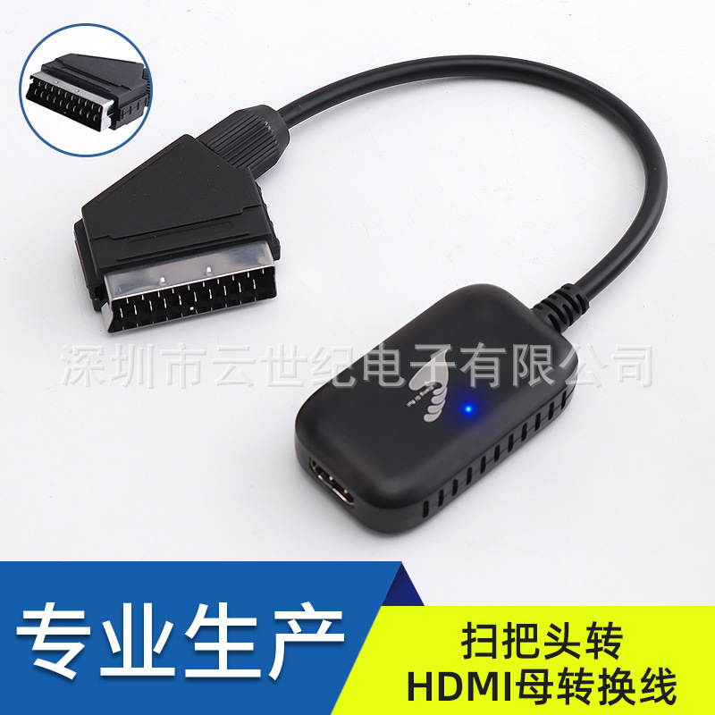 工場直販 高品質 SCART-HDMI変換ケーブル メス型 ブラック(1080P)
