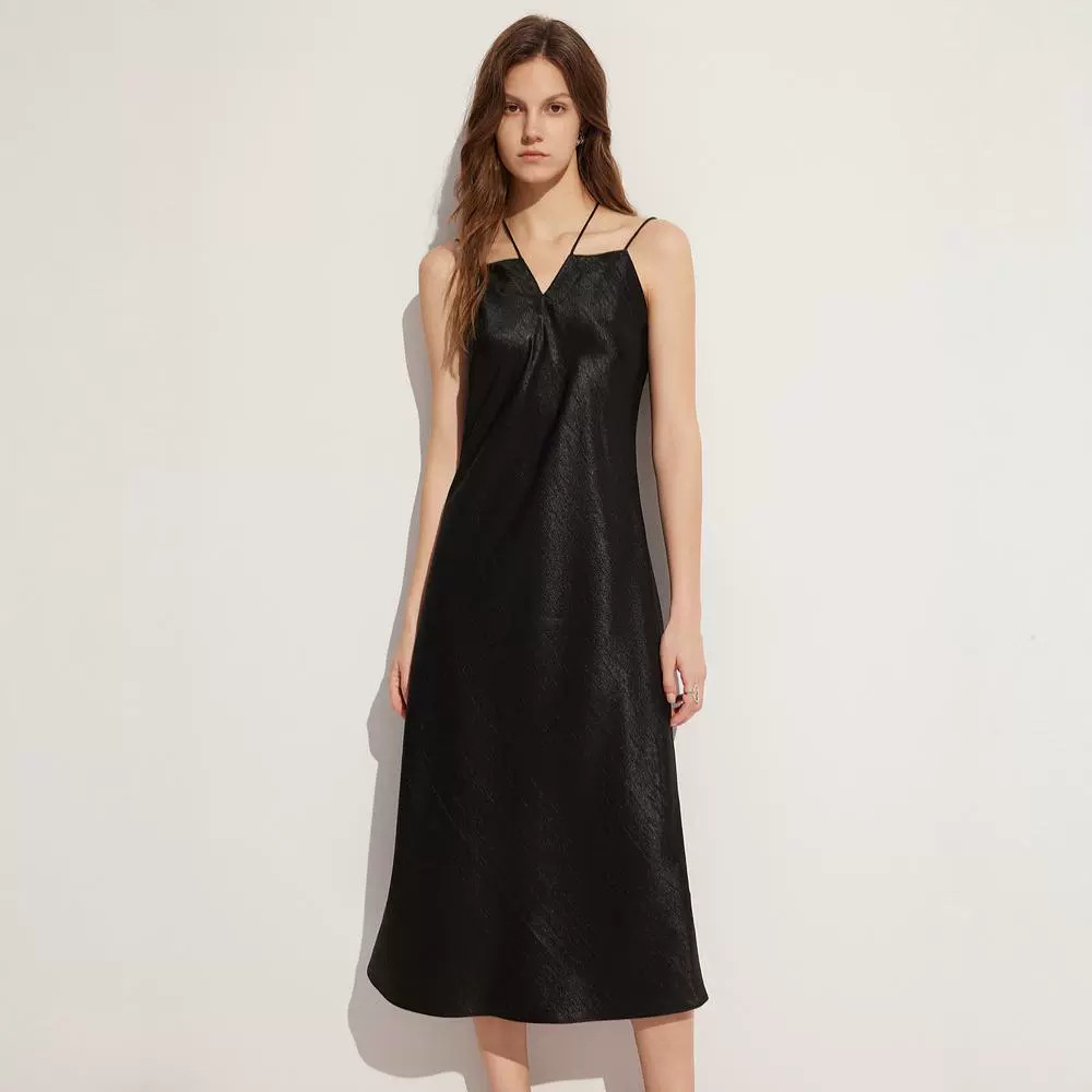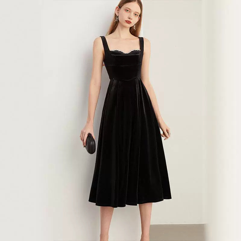 ヘボン風黒いドレス2024夏の新型ミディアムストラップワンピース女性デザイン感気心機スカート