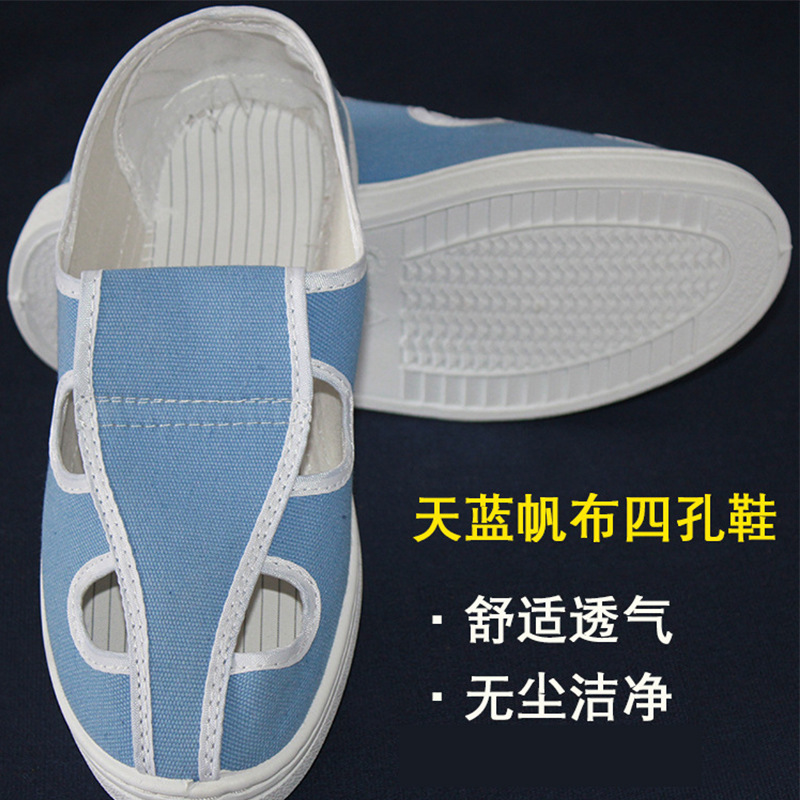 Pvcスカイブルー帆布四穴静電気防止靴クリーン夏破損補充配送