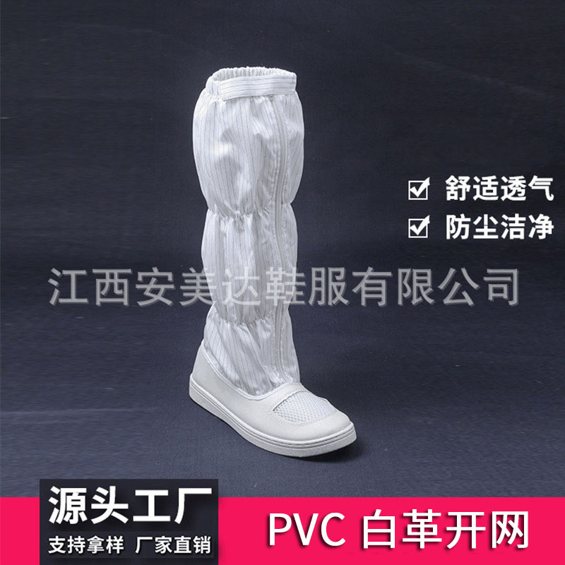 静電気防止靴長筒白革開網pvc底保護靴通気白条長筒足部防塵工場靴