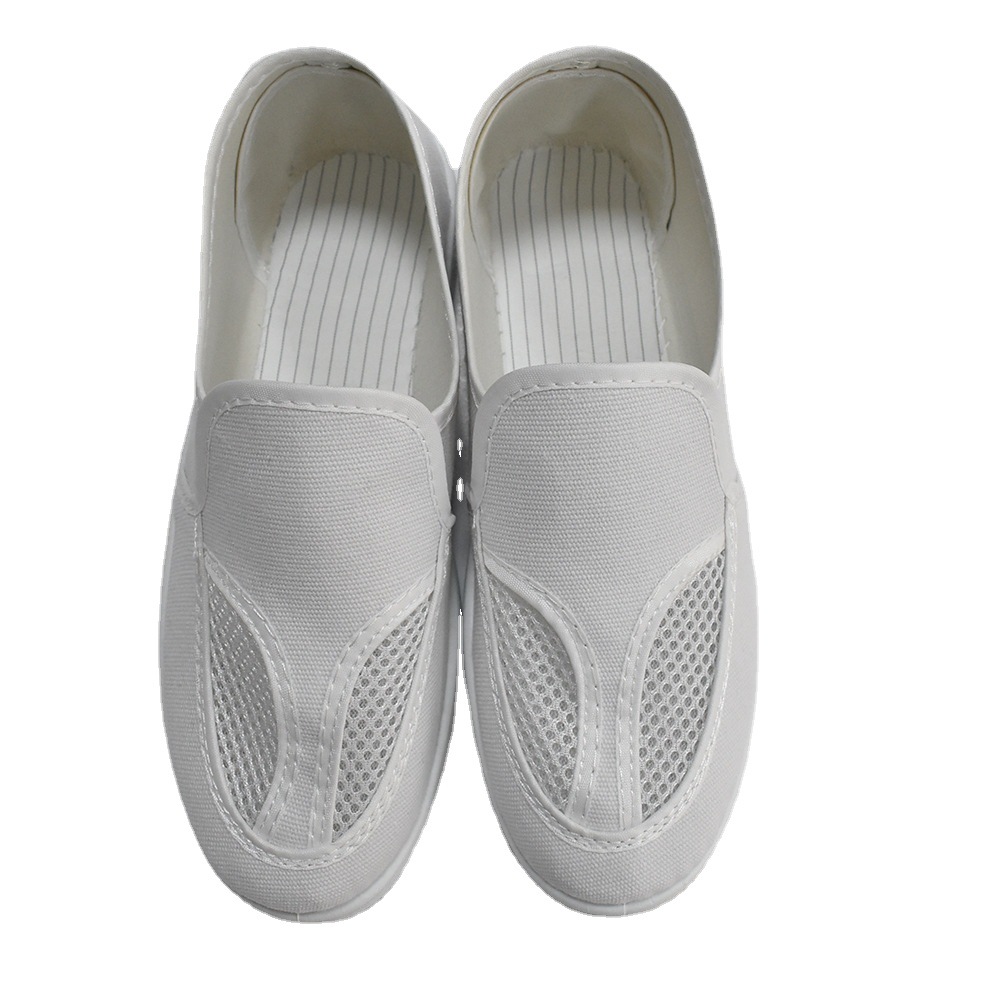 静電気防止ネット靴白帆布pvc底通気メッシュ靴pvc底帆布冷粘工靴工場卸売り