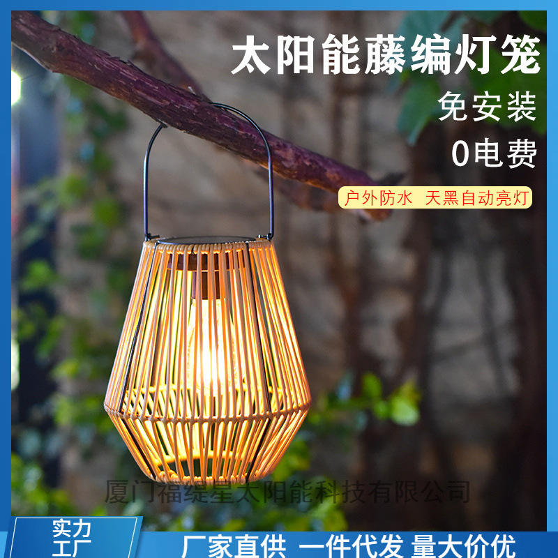 ✅屋外ソーラーガーデンライト籐竹编みランタン中国式レトロ吊りライトベランダ装饰雰囲気感小夜