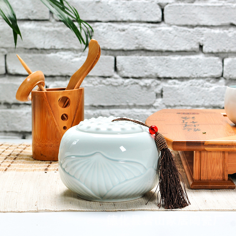 岩山徳化青磁貯蔵缶陶磁器贈答品卸売りプーアル茶紅茶食品茶葉缶礼箱セット