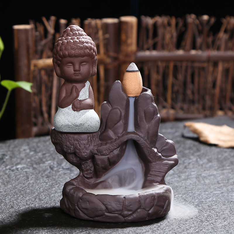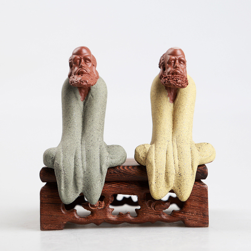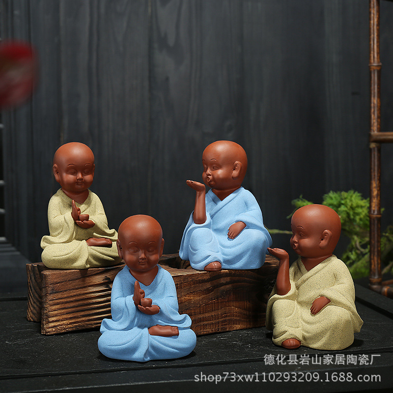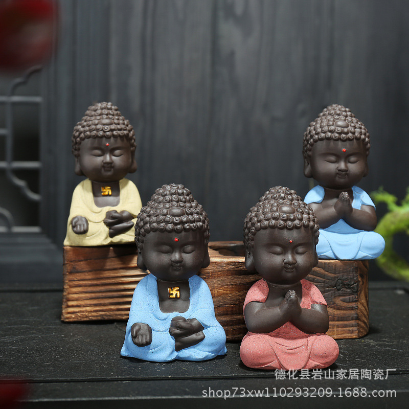 陶磁器の逸品のお茶は仏像の小僧の紫砂の色の砂の自動車の装飾品の小如来の吉祥の手作りの花のペットをかわいがります。