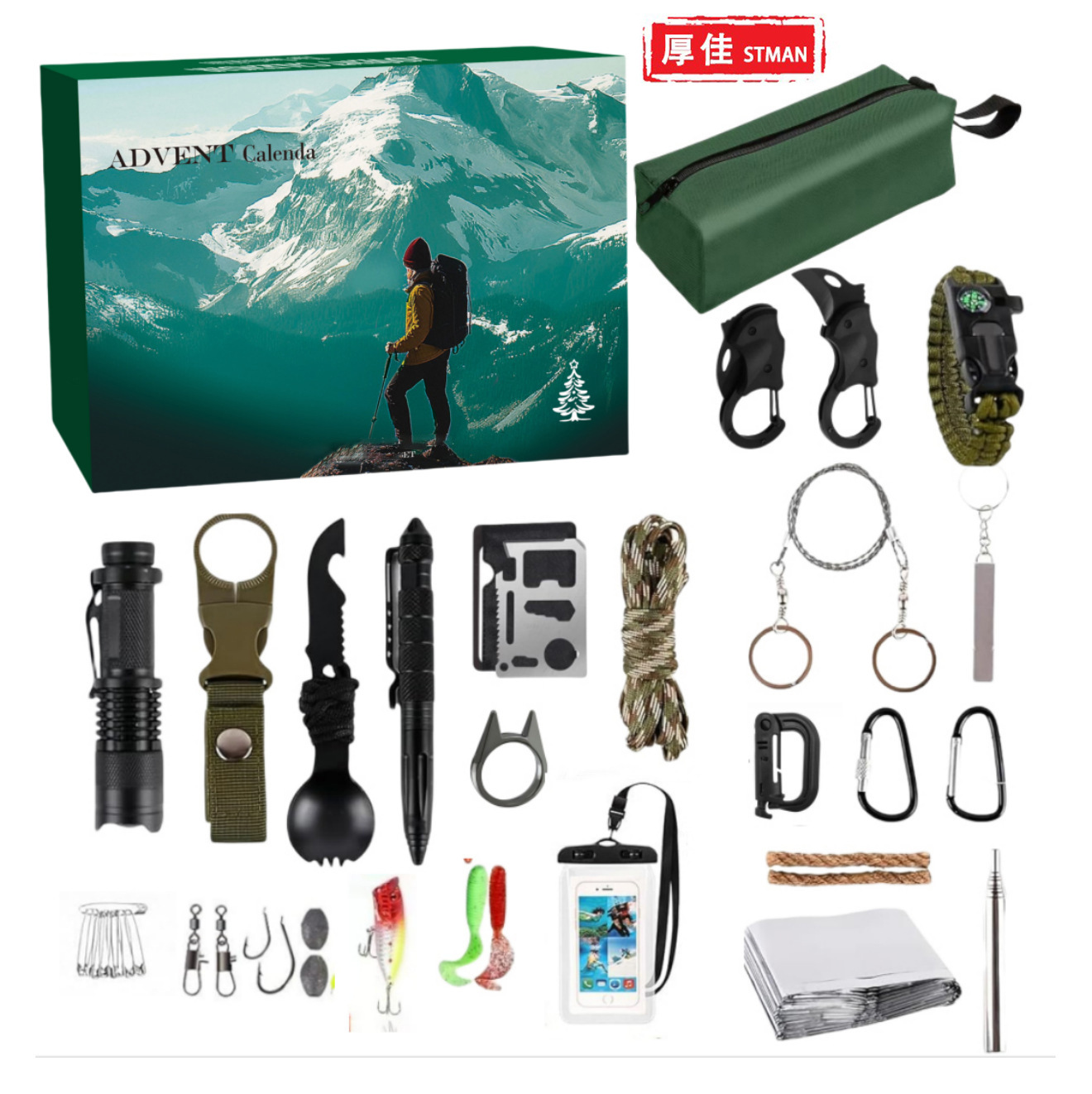 クロスボーダー 2025 アウトドア サバイバル サバイバル ツール セット 24 日 クリスマス アドベント カレンダー ギフト ブラインド ボックス