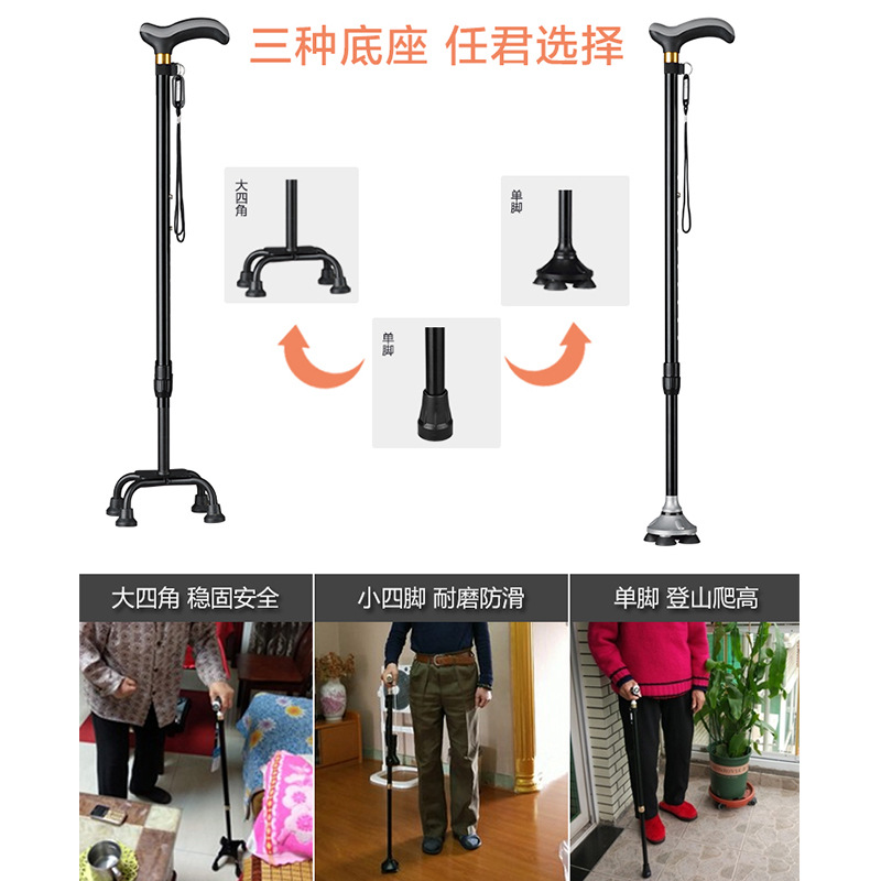 高齢者用のゴム引きハンドル杖、軽量アルミニウム合金伸縮式滑り止め調整杖、高齢者用落下防止杖