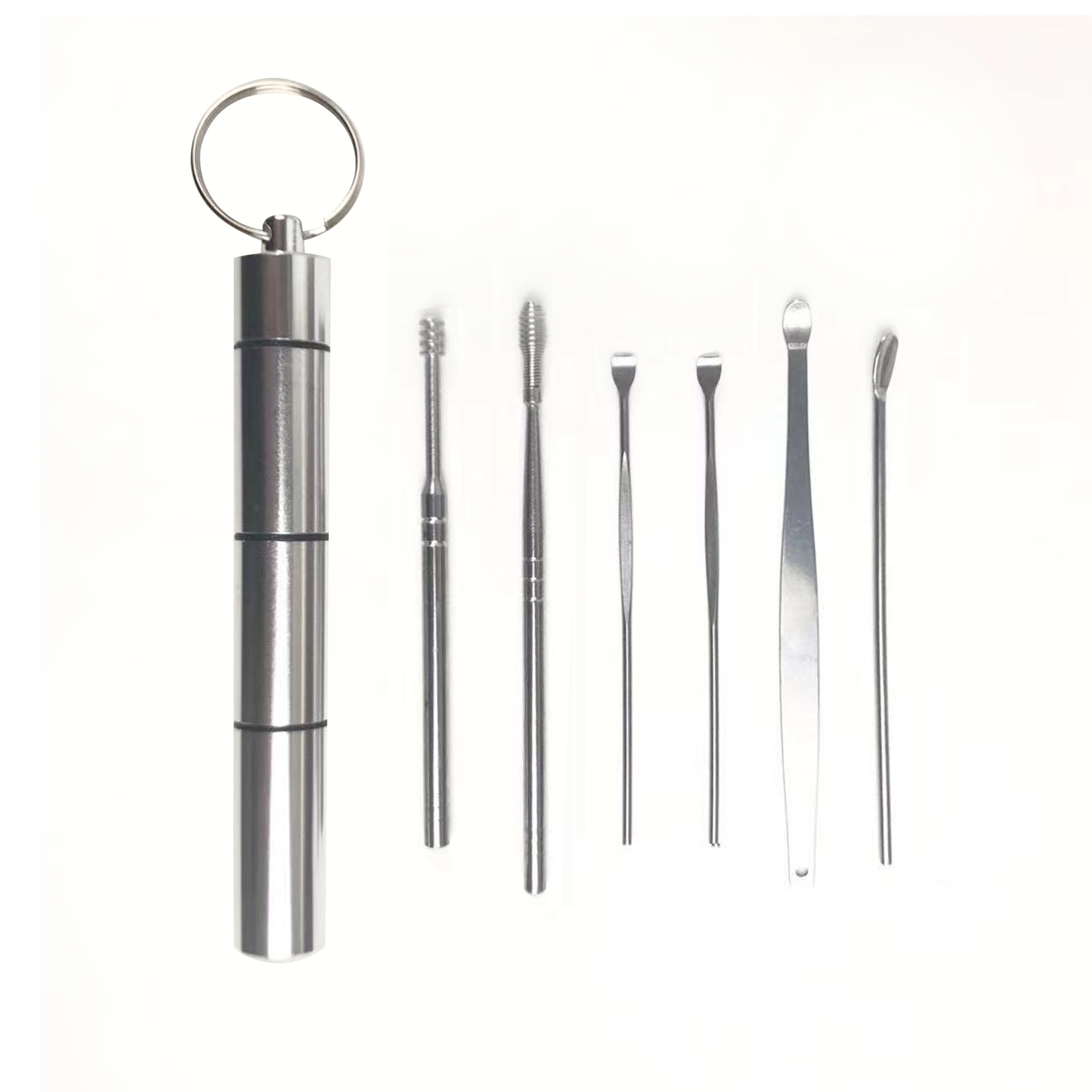 ステンレス耳掘り6点セット回転耳掘り耳スプーンセットロゴ耳スプーン6点セット