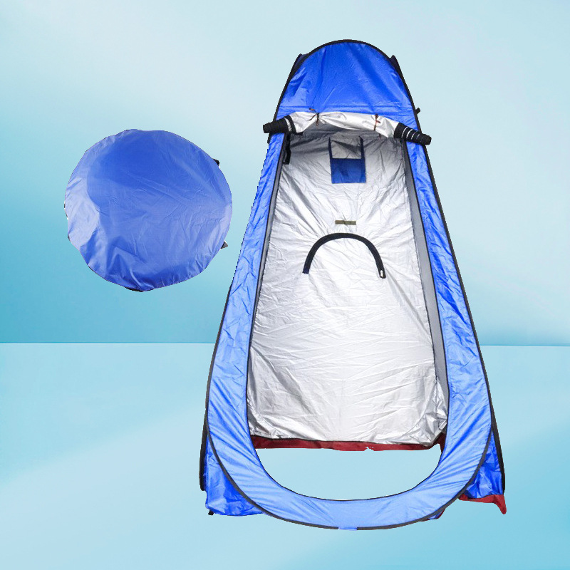 全自動で脱衣テントを開けます。屋外でシャワーを浴びます。