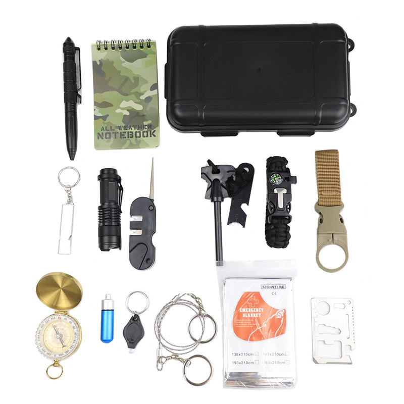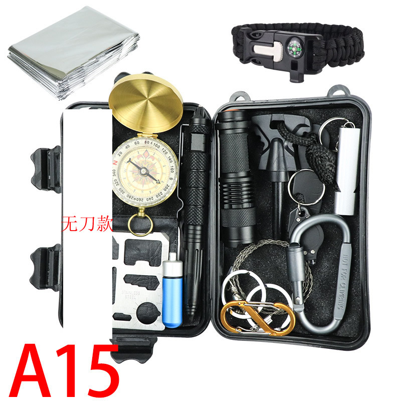 A15アウトドア装備求生宝箱生存ツールセット多機能野外救急箱sos緊急用品