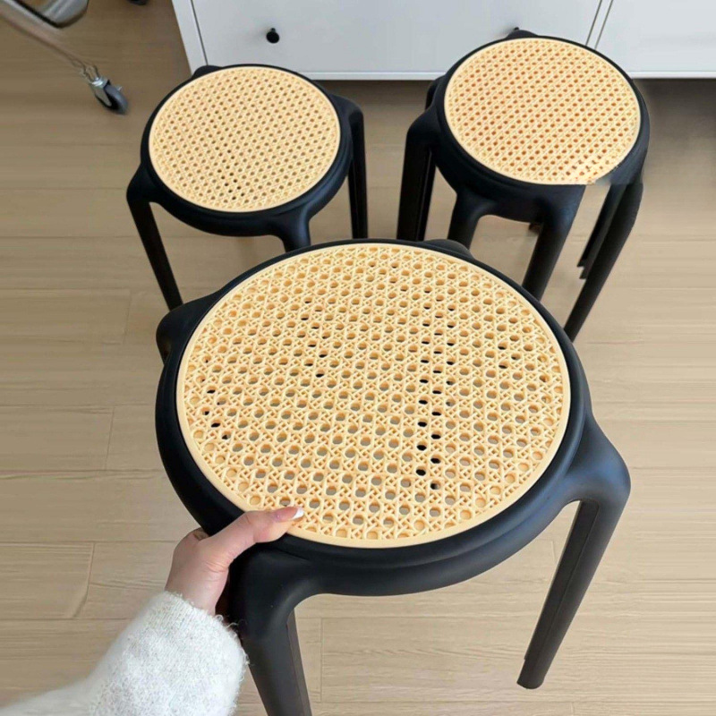工場直販、籐製交換靴、家庭用ダイニングスツール、小さな丸いスツール、積み重ねられた厚みのあるドレッシングベンチ、モダンでシンプルな北欧