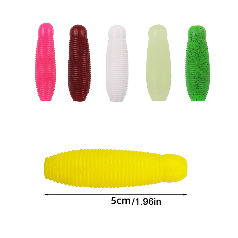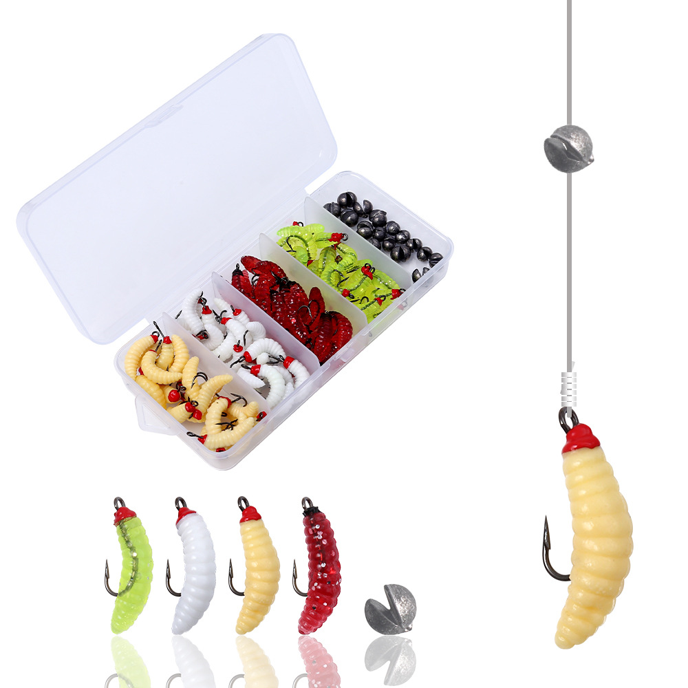 100個/箱 フック付き赤頭ミルワーム ソフトベイト バス釣り用 釣り針付き オープンマウス リードを傷つけずに噛むセット