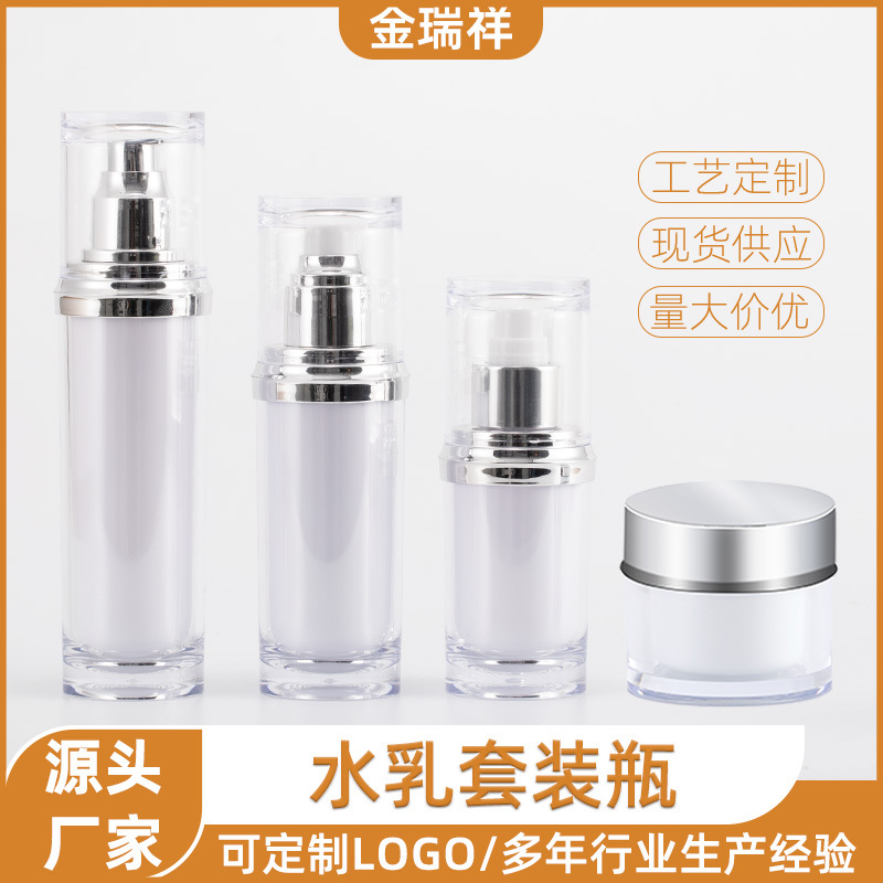 元のメーカーの二重円柱の設計50mlは環境保護の水乳のスーツのスキンケアの3つのセットのために空の瓶を詰めます。