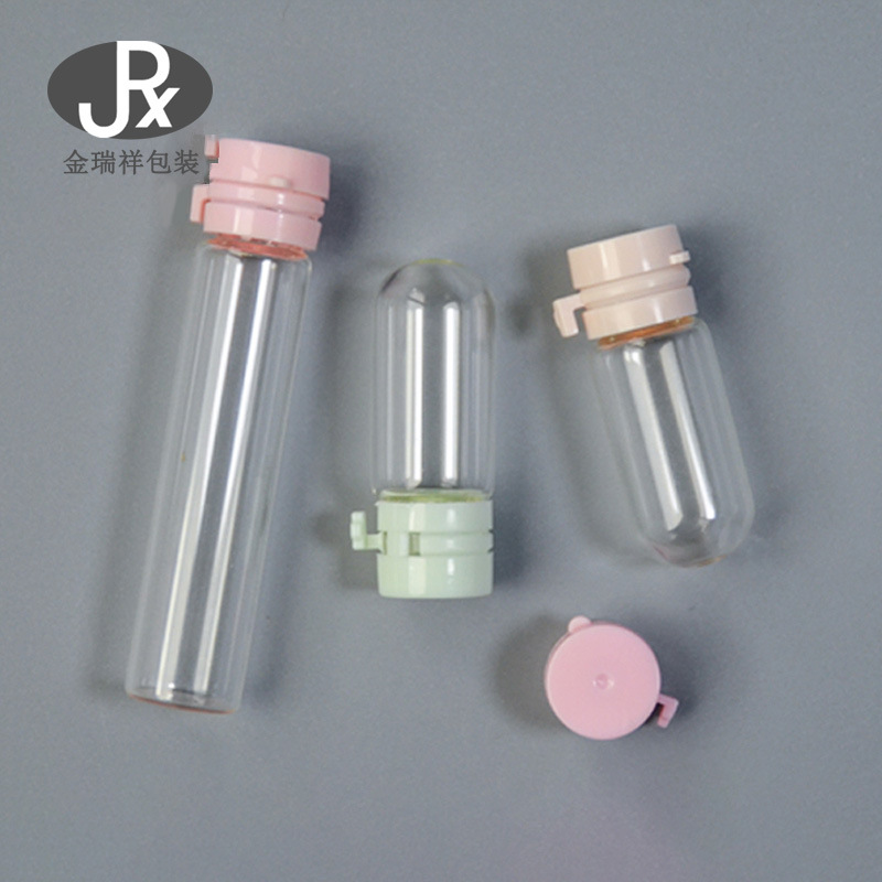 1.5-5ml精華液瓶カラー引き裂き蓋次投分注瓶ガラス口瓶透明丸底小電球
