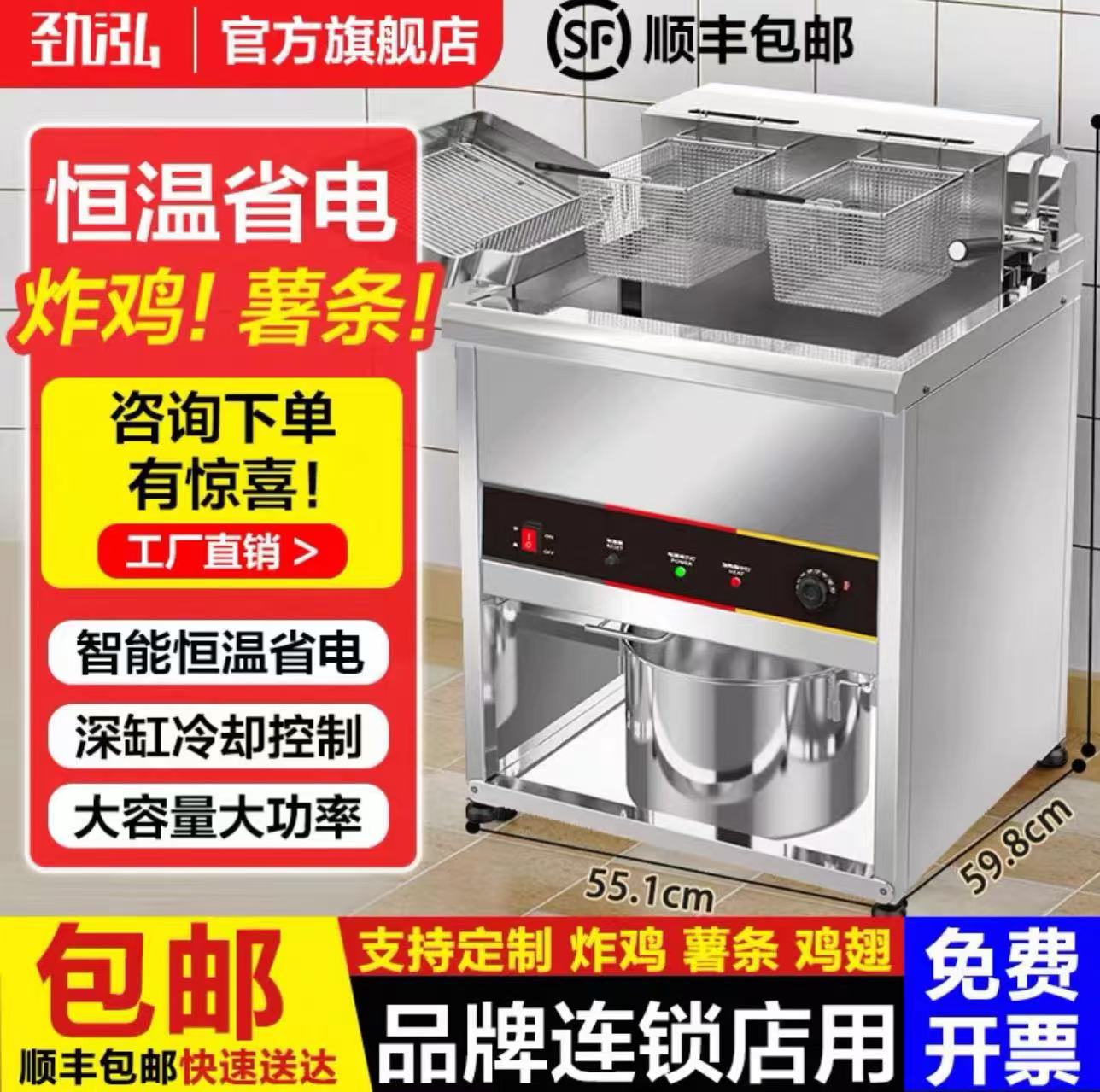 業務用電気大容量縦型フライヤー、二重シリンダー恒温揚げ物機、串揚げ機、電気揚げ物機、フライドチキン