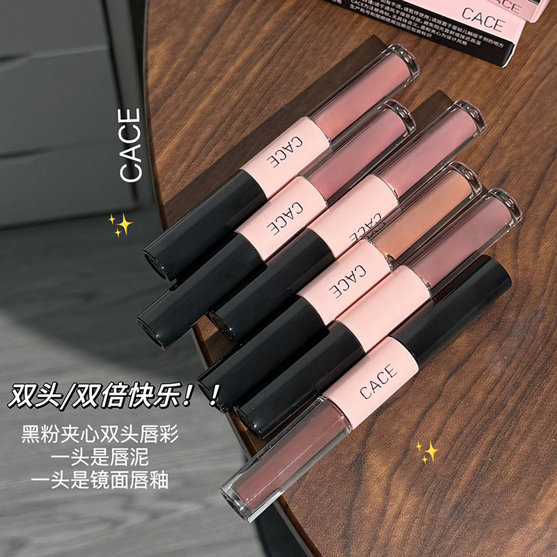 CACE墨粉サンドイッチ二頭唇彩化粧二頭唇釉薬マット鏡面水光柔らかい霧生地平価卸売り