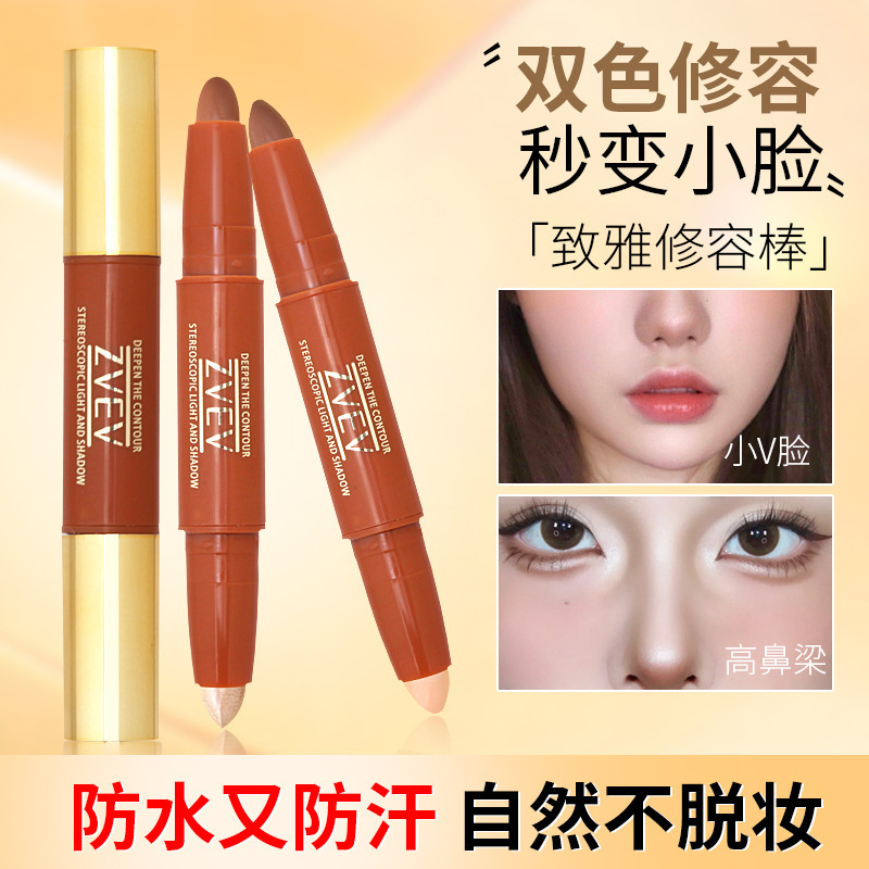ZVEVダブルヘッド修容ハイライトペン一体防水ハイライトくま鼻影自然卸売