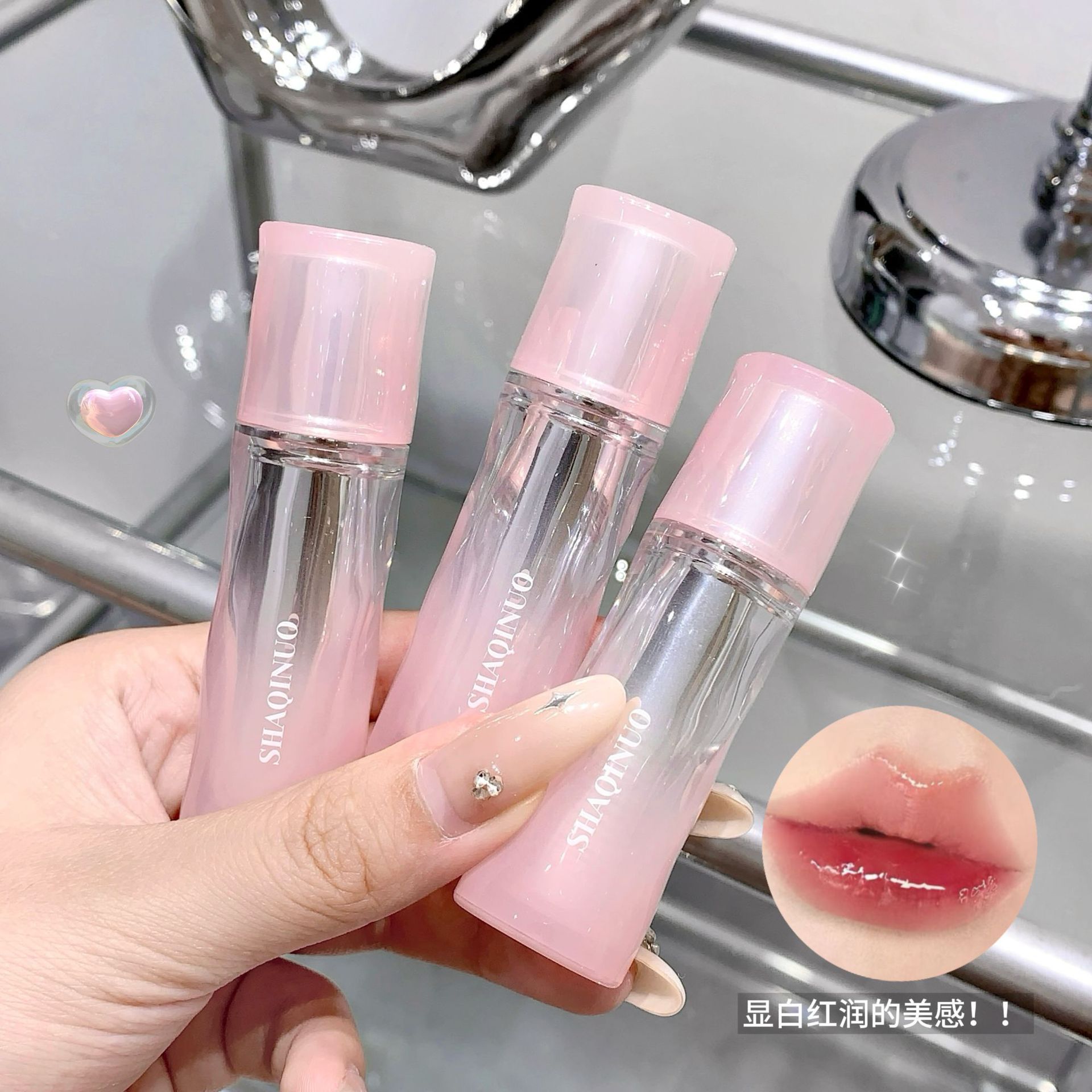 SHAQINUO水透蛍光潤水光唇釉薬水潤透亮は化粧を持っています。