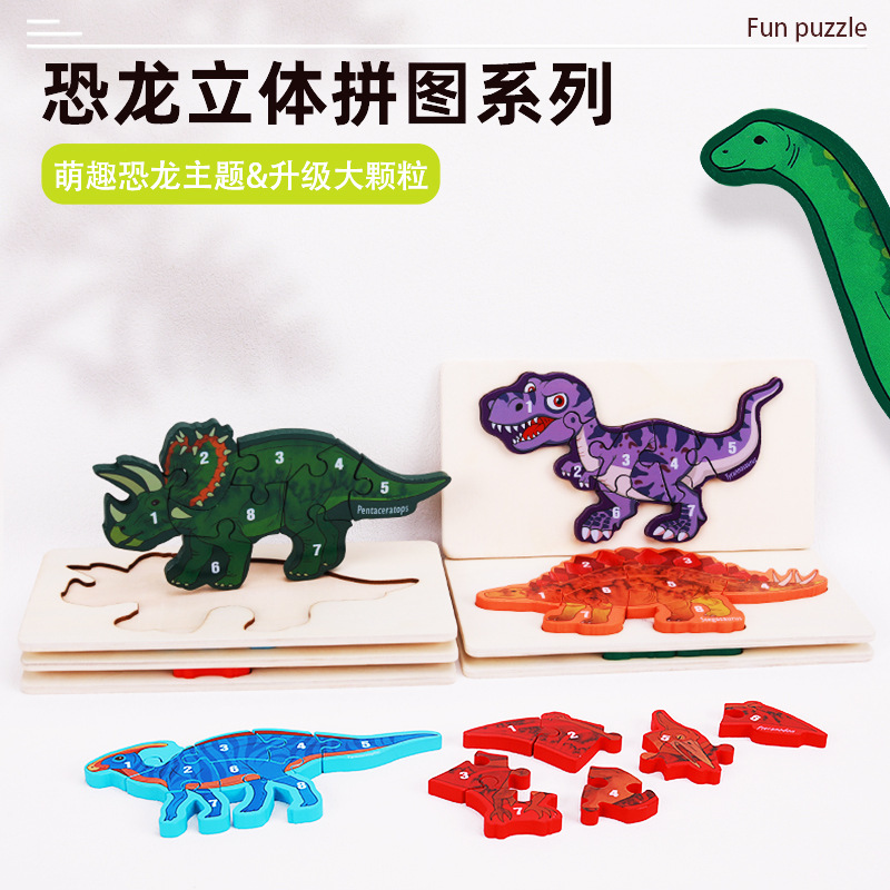 木製子供知育玩具親子乳幼児ジュラ紀漫画恐竜認知知能開発立体パズル