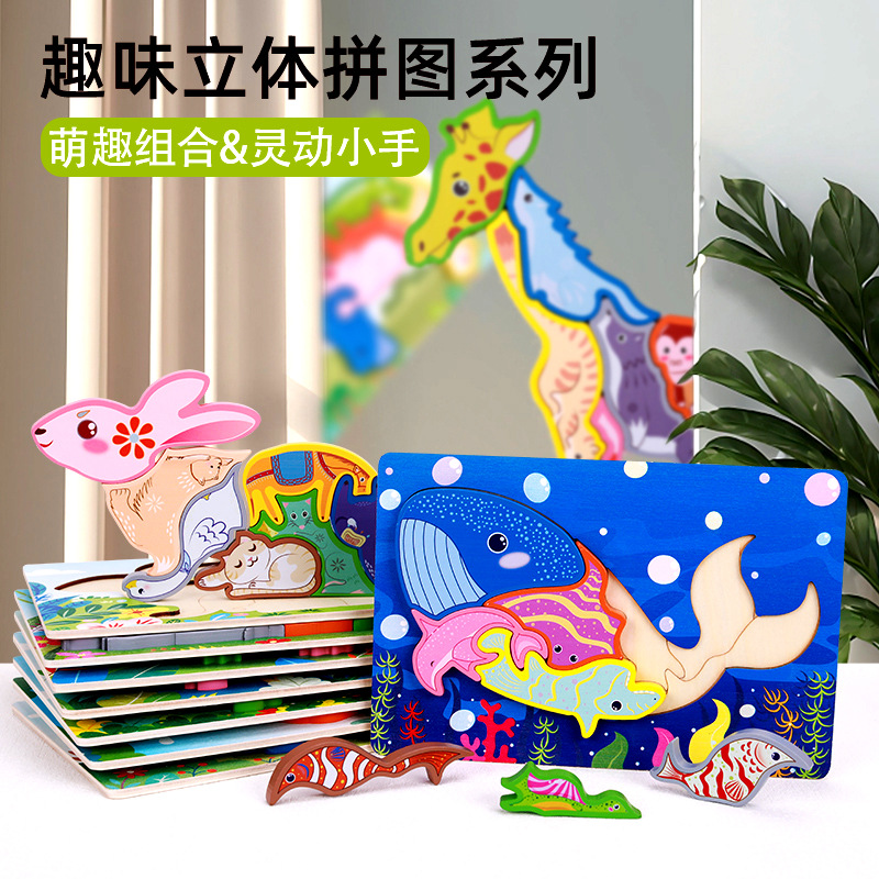 新型子供木製可動関節立体パズル3d早教パズル子供益智積み木玩具3-6歳