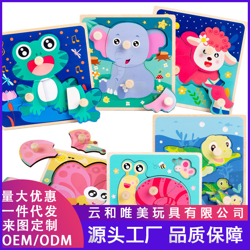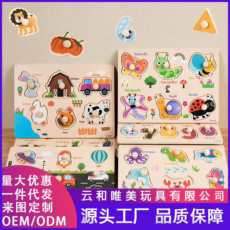 クロスボーダー木製パズル手つかみボード認知ボード乳幼児漫画動物乗り物ペアボードおもちゃ