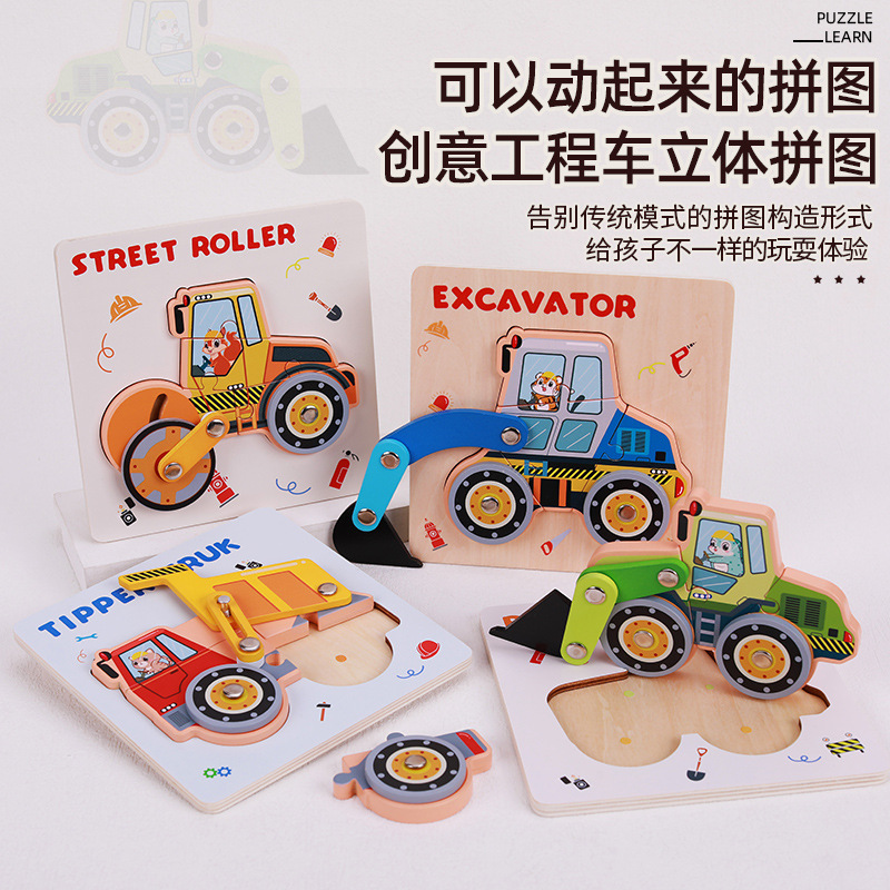 新型木製可動関節立体赤ちゃん楽家クロスボーダー児童早教玩具自動車パズル卸売り