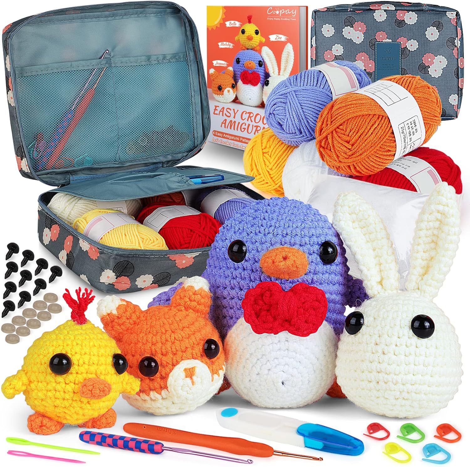 Coopayかぎ針編みセット初心者子供大人向け-かわいいペンギン、チキン、ウサギ