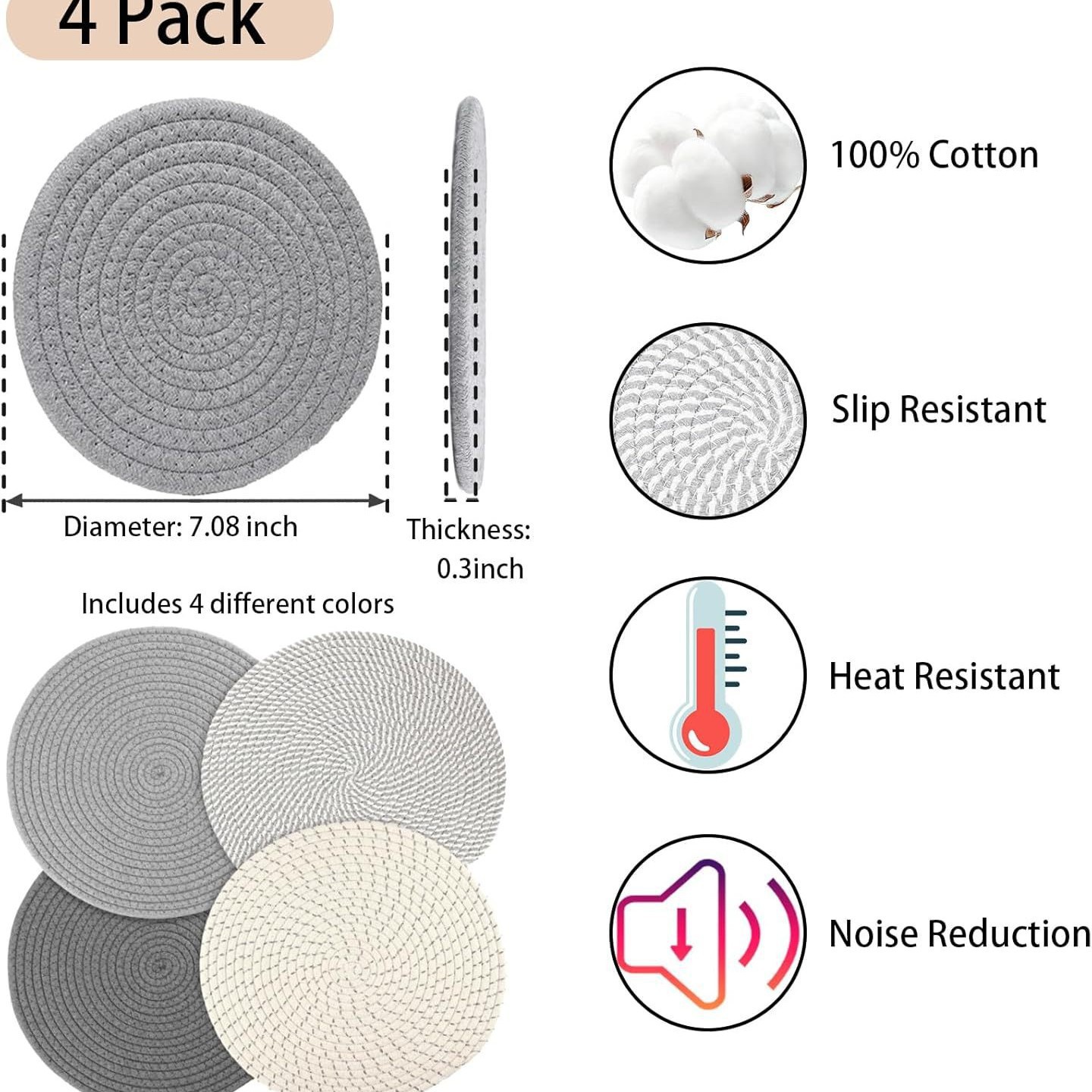 国境を越えた綿ロープの食事マット8点セット棚付き家庭用綿線テーブル断熱マット防汚マット鍋マット