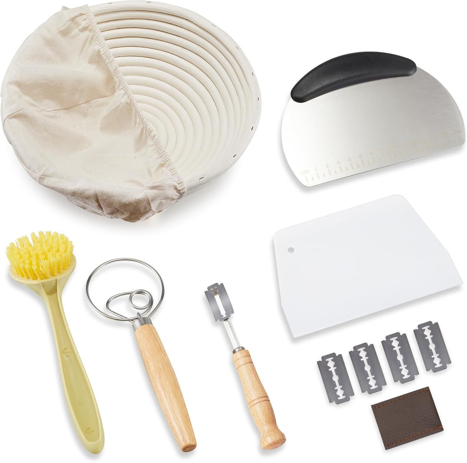 Amazon パン焼き道具用品 籐発酵かご 6点セット スクレーパー パウダービーター パンカットセット