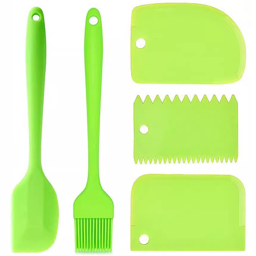 カラースクレーパー、オイルブラシ、クリームプラスチックスクレーパー、ケーキカッター、耐久性がありお手入れが簡単な5点セット