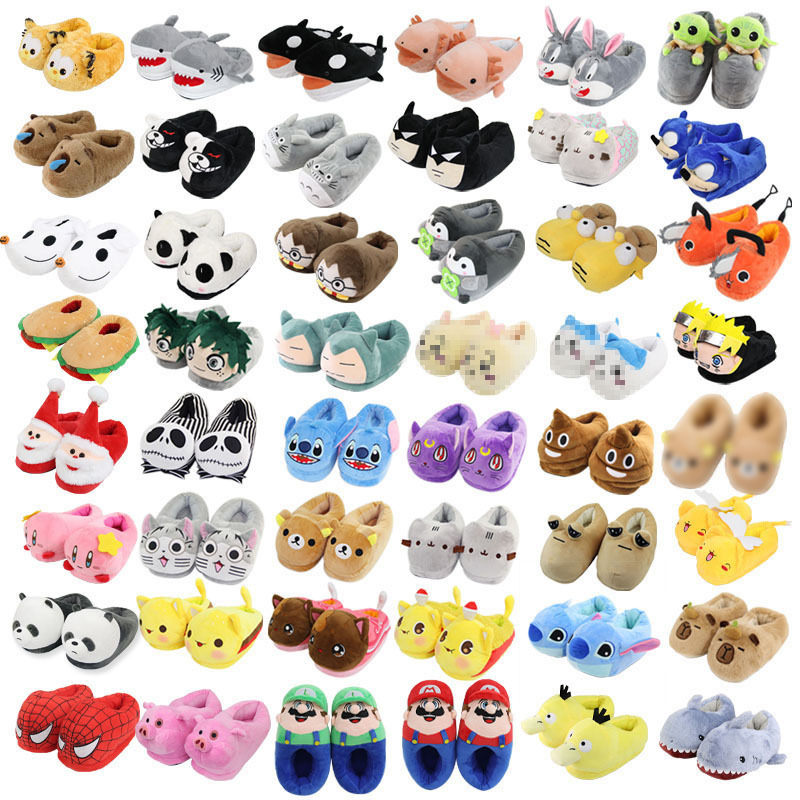 2025年秋冬向け、漫画風アニメ柄のクロスボーダーコットンシューズ。カップル向け、室内履き、裏起毛、男女兼用、大人用、厚手。