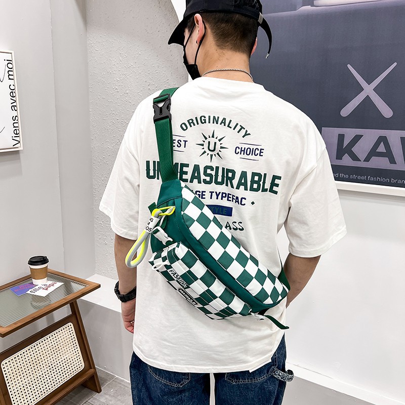 韓国の子供の胸の包みの2023の新型のチェス盤の格の男の子のかっこいい斜めの包みのかわいい笑顔の赤ちゃんの小銭のリュックサック