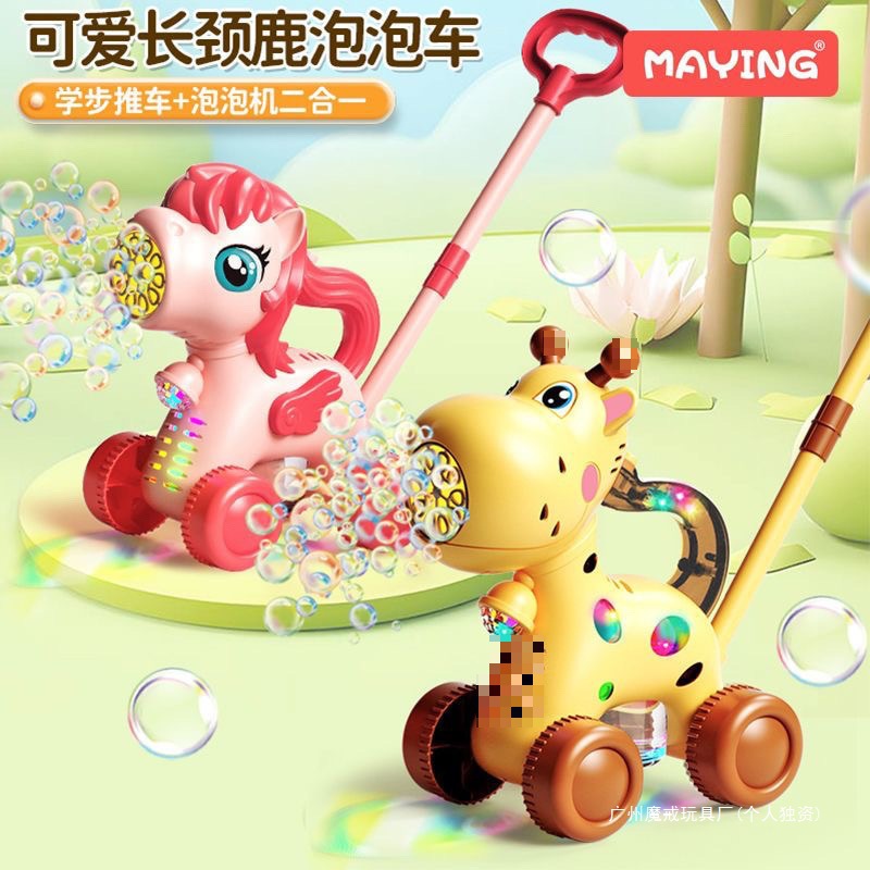 子供の屋外ポニー手押しキリン電動おもちゃ全自動バブルライト男の子と女の子バブルマシン