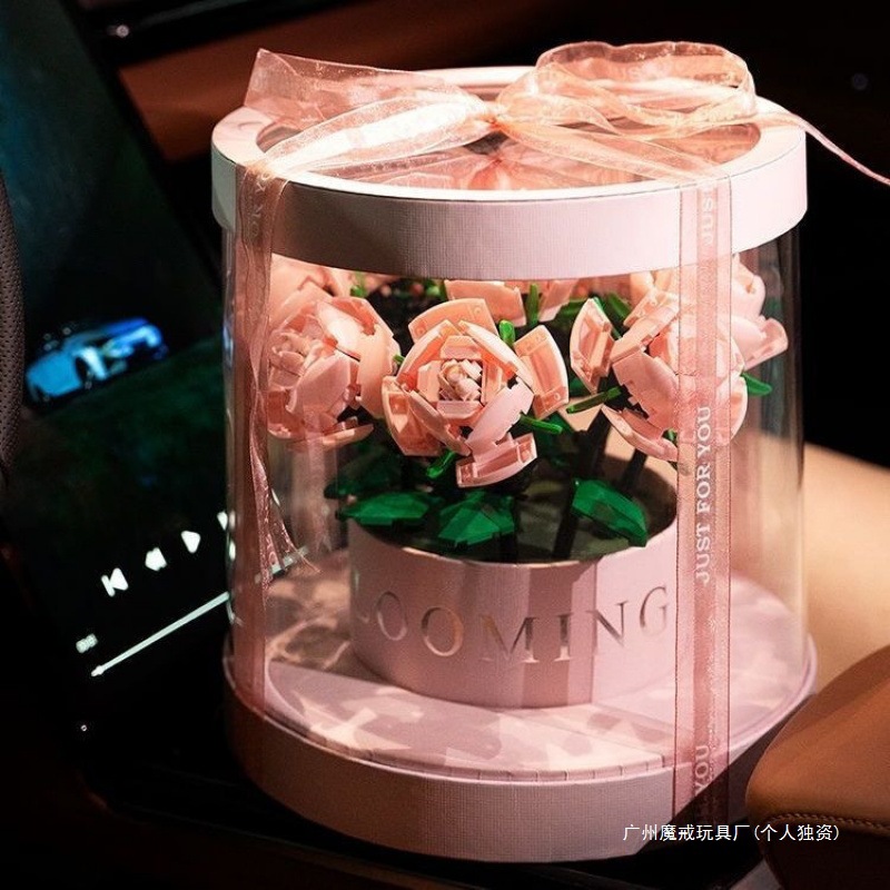 ローズブーケハグバケツバレンタインデー DIY 組み立てビルディングブロック永遠の花のおもちゃ誕生日ギフト女の子新年プラスチック