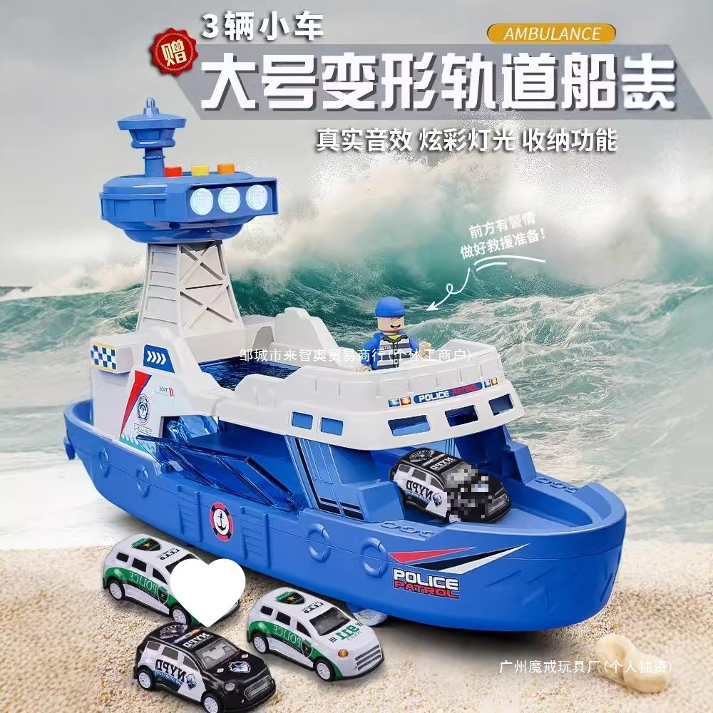 子供用船のおもちゃ、音と光の船モデル、男の子の警察消防士、収納可能な車、子供の日のギフト、慣性