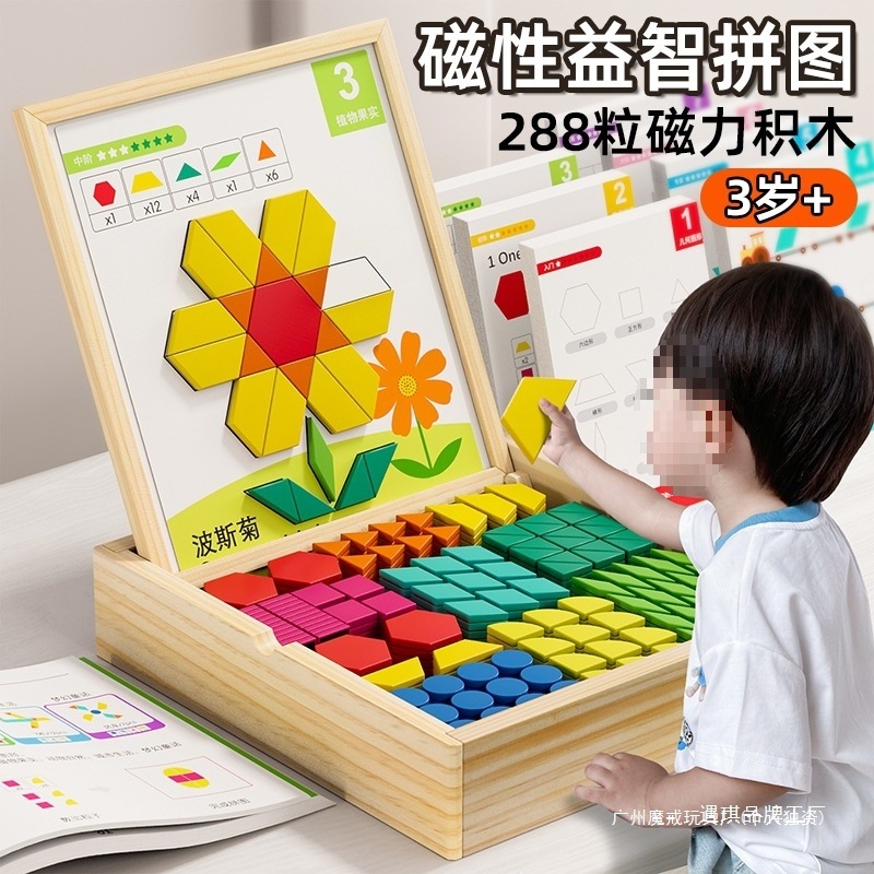 幾何学的なビルディングブロック磁気パズルタングラムベビー教育パズル3から6歳の幼稚園児の誕生日プレゼントのおもちゃ