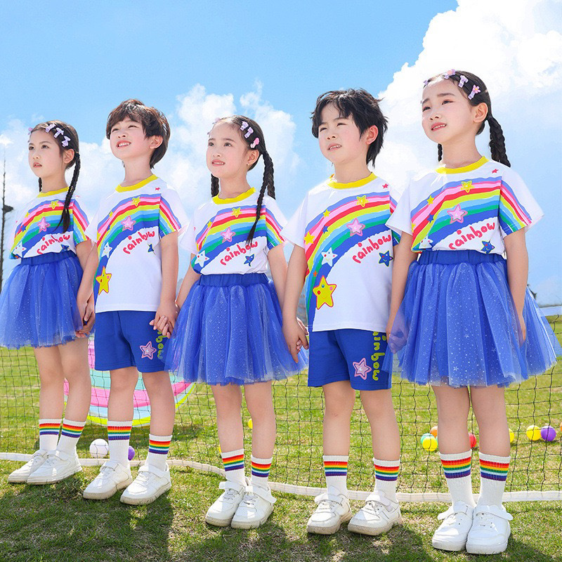 新しい子供の卒業式子供のパフォーマンス衣装女の子プリンセススカートチュチュスカート幼稚園ダンスパフォーマンス衣装レインボースカート