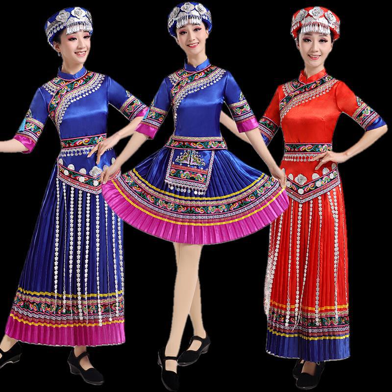 新商品の成人女性チャン族の公演服56人の民族の女子学生の少数民族の合唱服の舞台の演技の服装