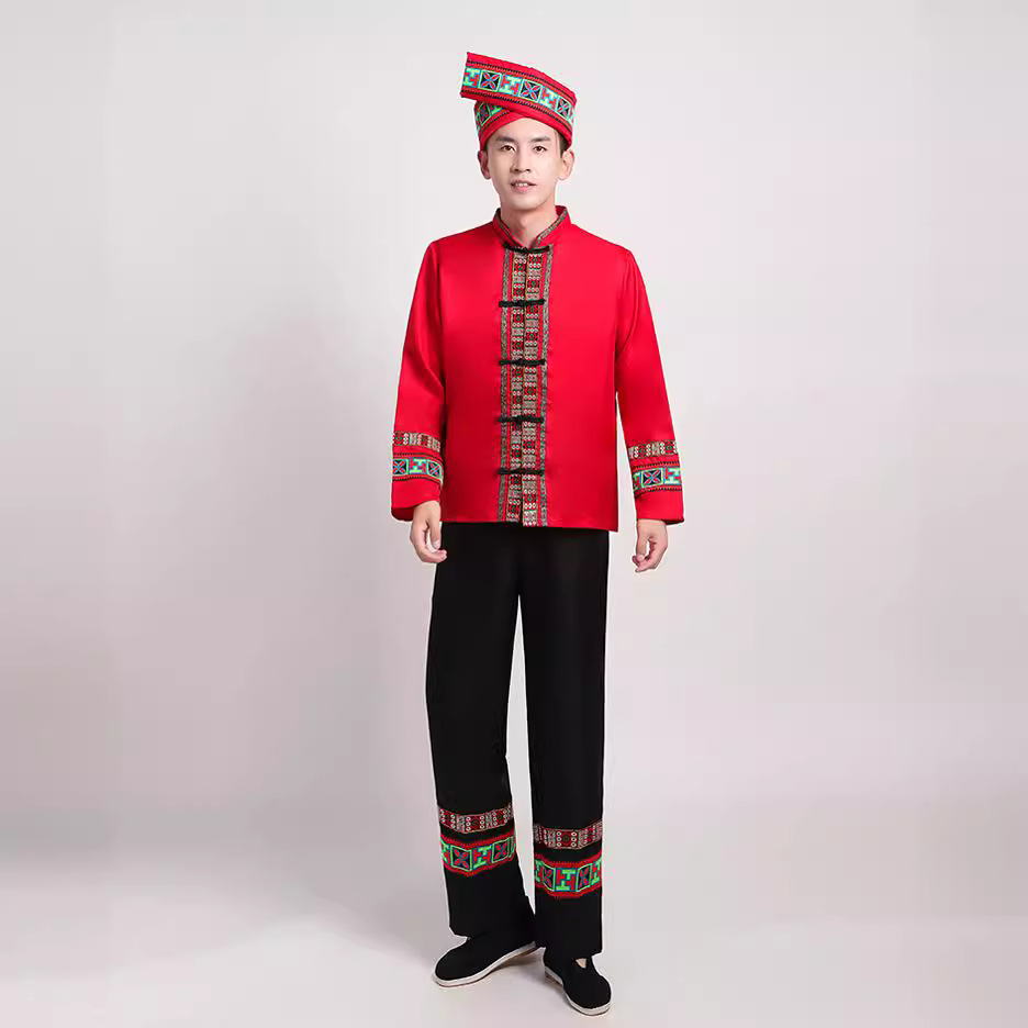 新型成人男性ブラン族公演服56名族男子少数民族合唱服舞台演技服