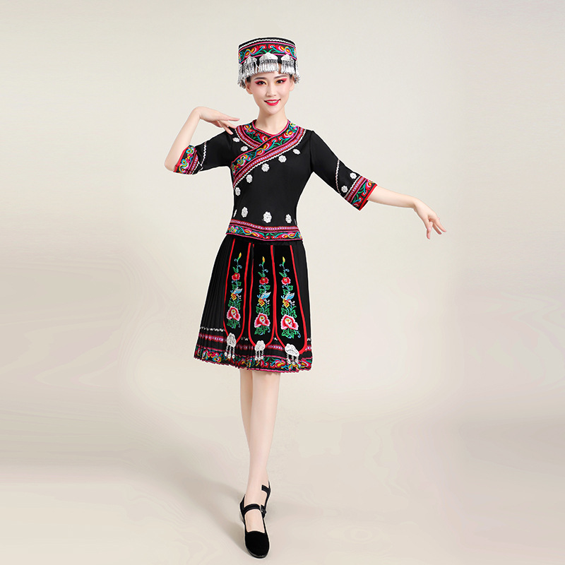 伝統的な広西チワン族服飾レディース少数民族衣装壮錦刺繍ダンス縁日帰実家公演着